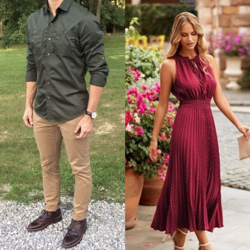 Mulheres: Ao escolher o vestido, pedimos que evitem o uso da cor branca e azul. Em caso de dúvida, fique à vontade para mandar uma foto do vestido para a noiva. O casamento será no campo, então vista seu sapato mais confortável.